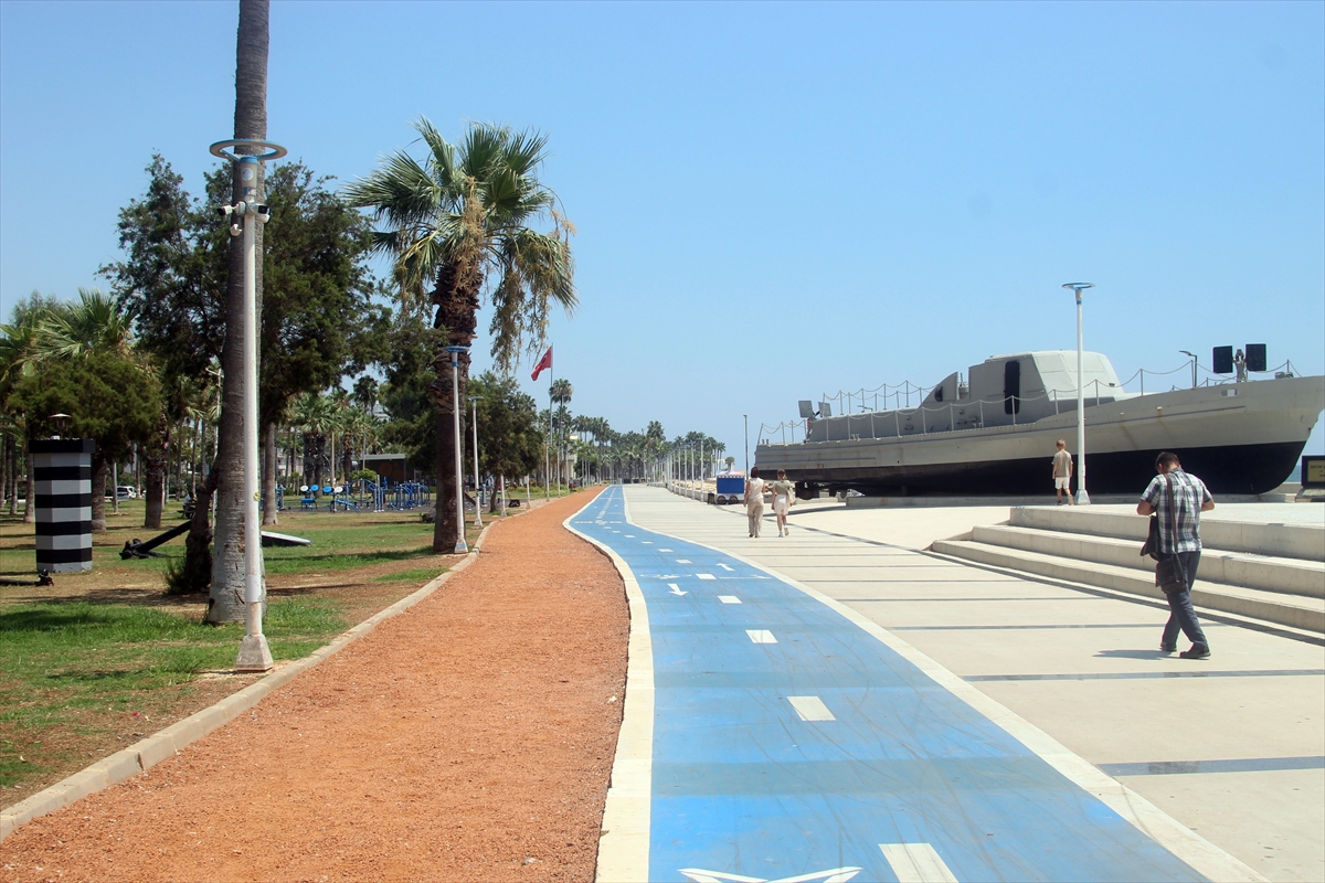 Sıcaktan bunalanlar Adnan Menderes Bulvarı'nın sahil bandındaki gölgelik alanlarda vakit geçirdi.
