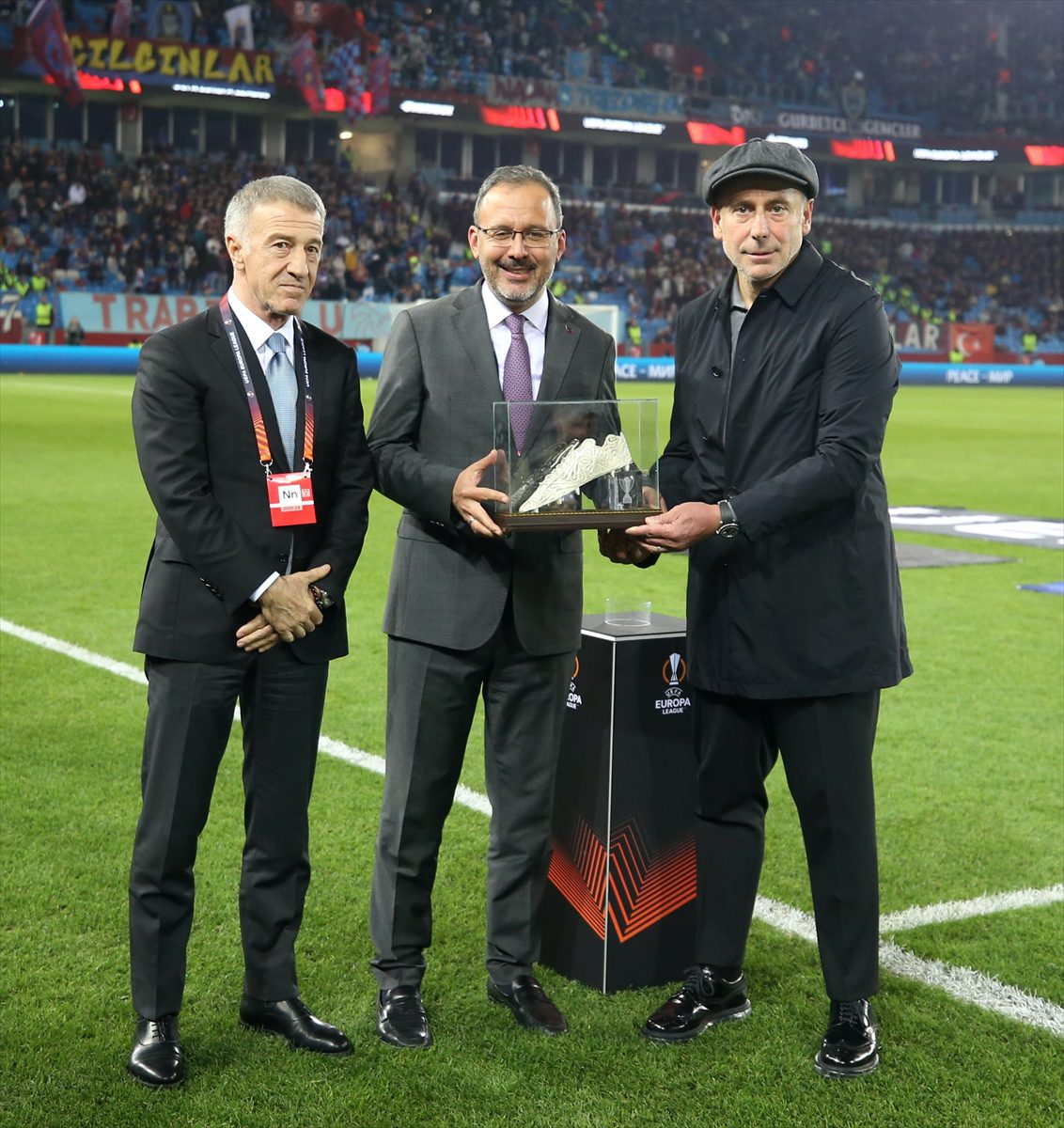 TRABZON (AA) – Gençlik ve Spor Bakanı Mehmet Muharrem Kasapoğlu, UEFA Avrupa Ligi H Grubu’ndaki Trabzonspor-Ferencvaros maçı öncesi teknik direktör Abdullah Avcı'ya, bordo-mavili takım kariyerinde geride kalan 100. maçı nedeniyle plaket verdi.