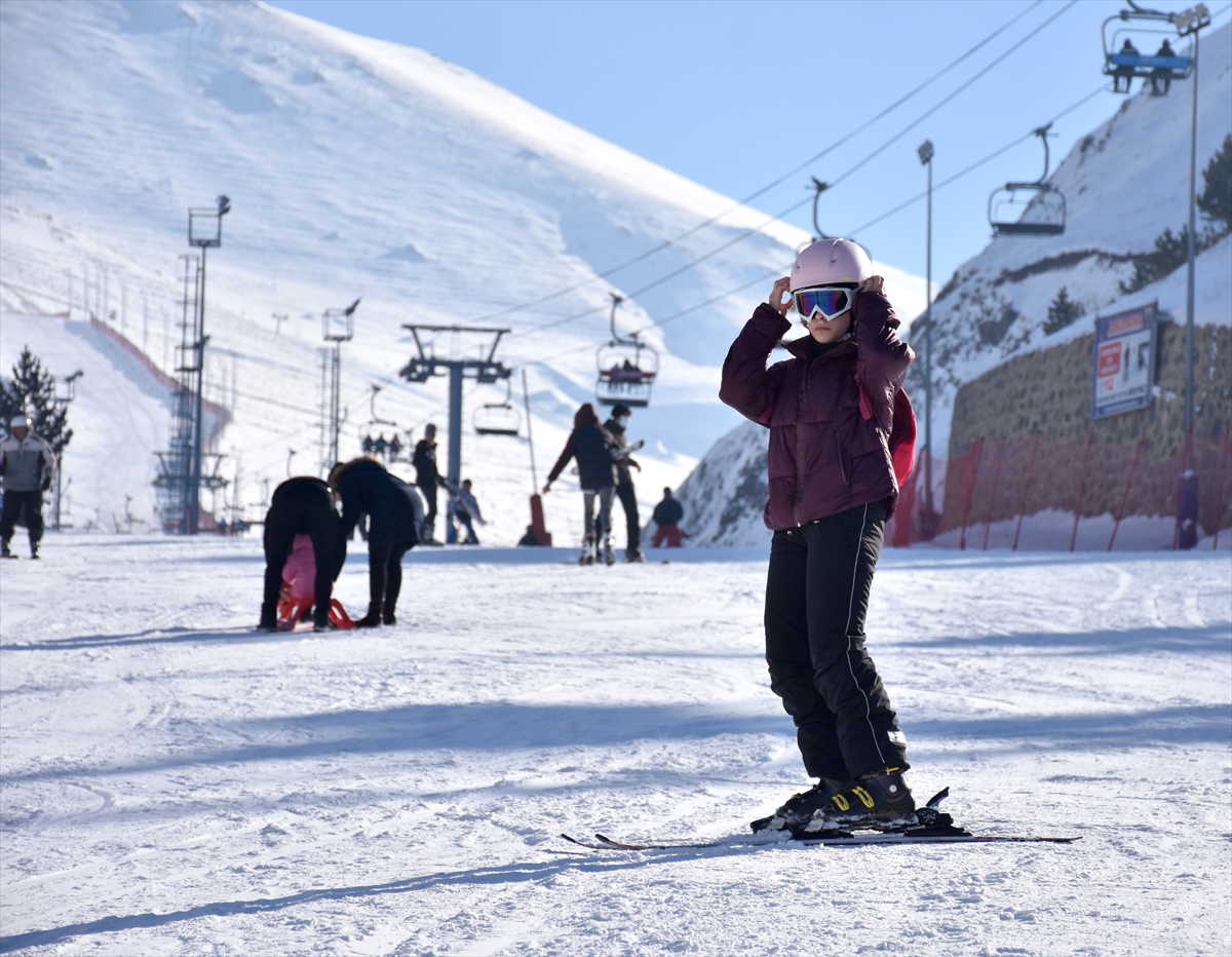 Kayakseverler hafta sonu Palandöken Kayak Merkezi'ne akın etti