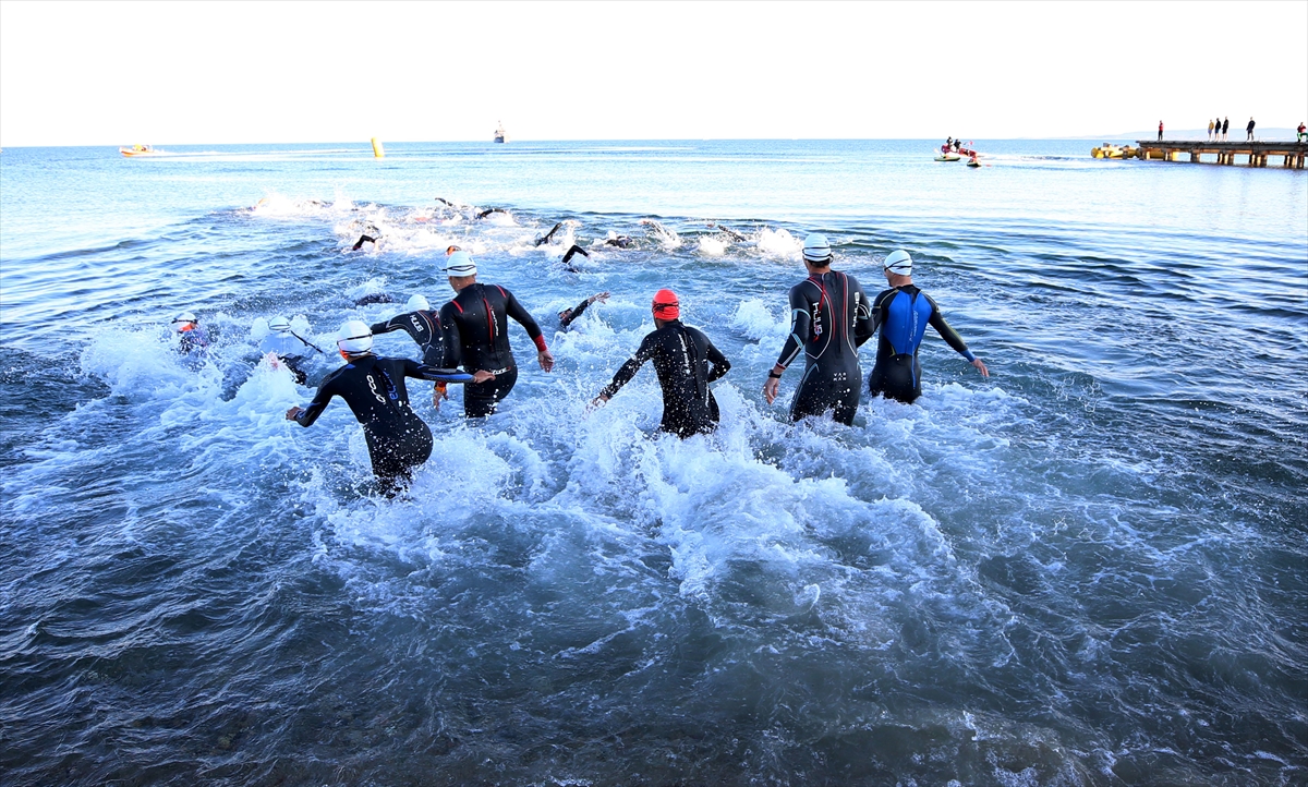 Sabah 07.00'de, Kabatepe açıklarında bekleyen P-1205 borda numaralı "TCG Karabiga" gemisinden Çanakkale Boğaz ve Garnizon Komutanı Tuğamiral Mustafa Turhan Ecevit'in verdiği start ile uzun mesafe triatlon yarışına başlayan sporcular sırasıyla 2 bin 100 metre yüzüp, bisikletle 112 kilometre katedecek.