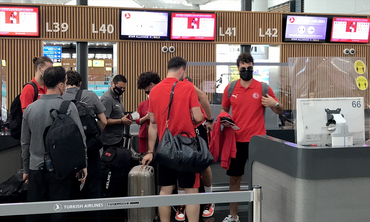 THY'nin saat 14.10'da kalkacak tarifeli seferiyle Kanada'nın Vancouver kentine gidecek milli takım kafilesi, İstanbul Havalimanı'na geldi.