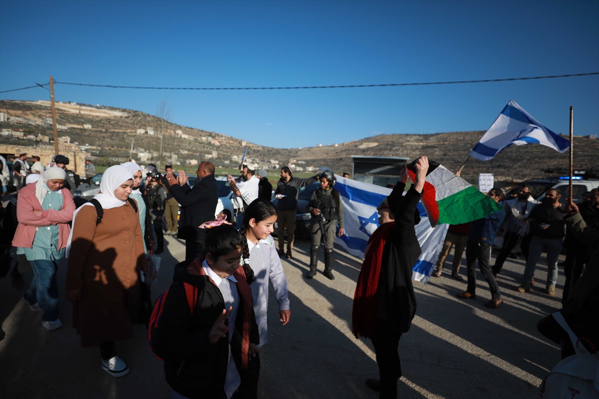 İsrail askerleri ve yerleşimciler Filistin köyünün girişini araçlarıyla kapattı