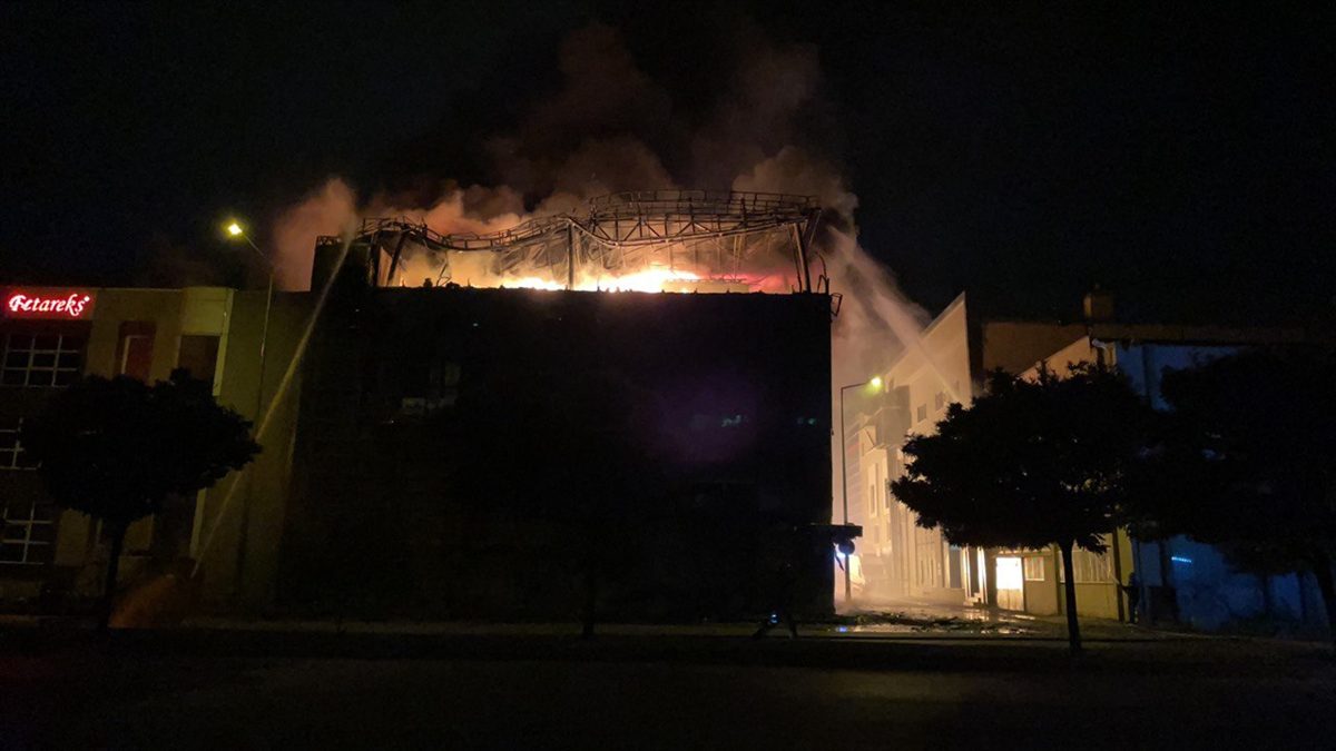 Bursa'da iş yerinde çıkan yangın söndürülmeye çalışılıyor