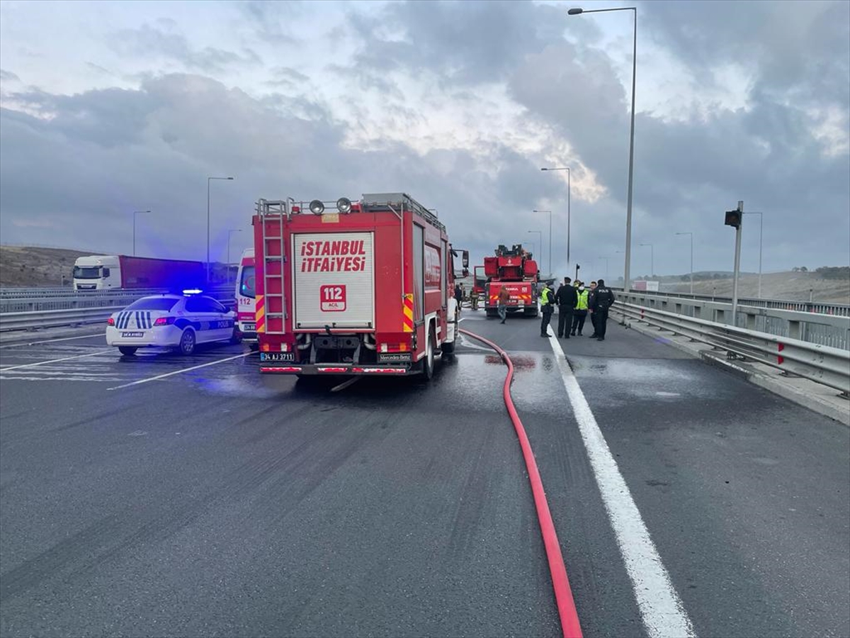 Arnavutköy'de seyir halindeki tırda çıkan yangın söndürüldü