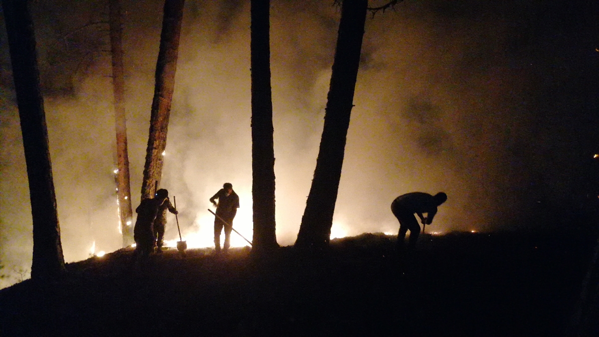 Alemler Mahallesi'ndeki Karıncalı Dağı eteklerinde 2 gün önce başlayan orman yangınına ekipler çok sayıda arazöz, su tankeri ve beton mikseriyle müdahale ederken, vatandaşlar da kazma ve küreklerle mücadeleye destek veriyor.