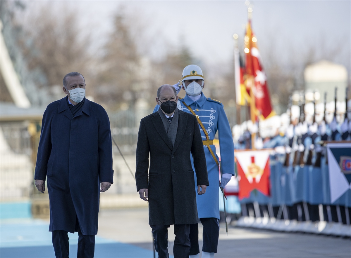 Cumhurbaşkanı Erdoğan, Almanya Şansölyesi Scholz'u resmi törenle karşıladı