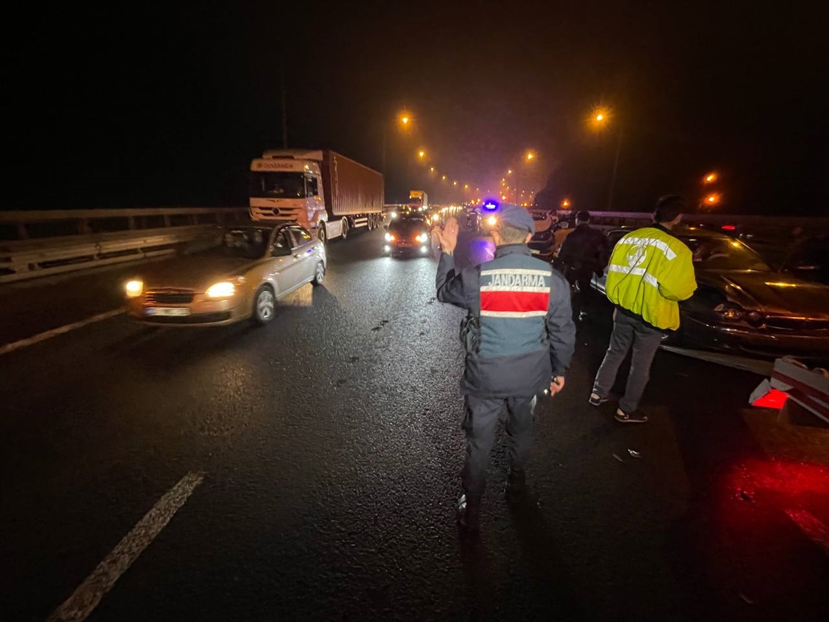 Bolu Dağı 2. viyadükte İstanbul istikametinde 6 otomobilin karıştığı kaza meydana geldi.