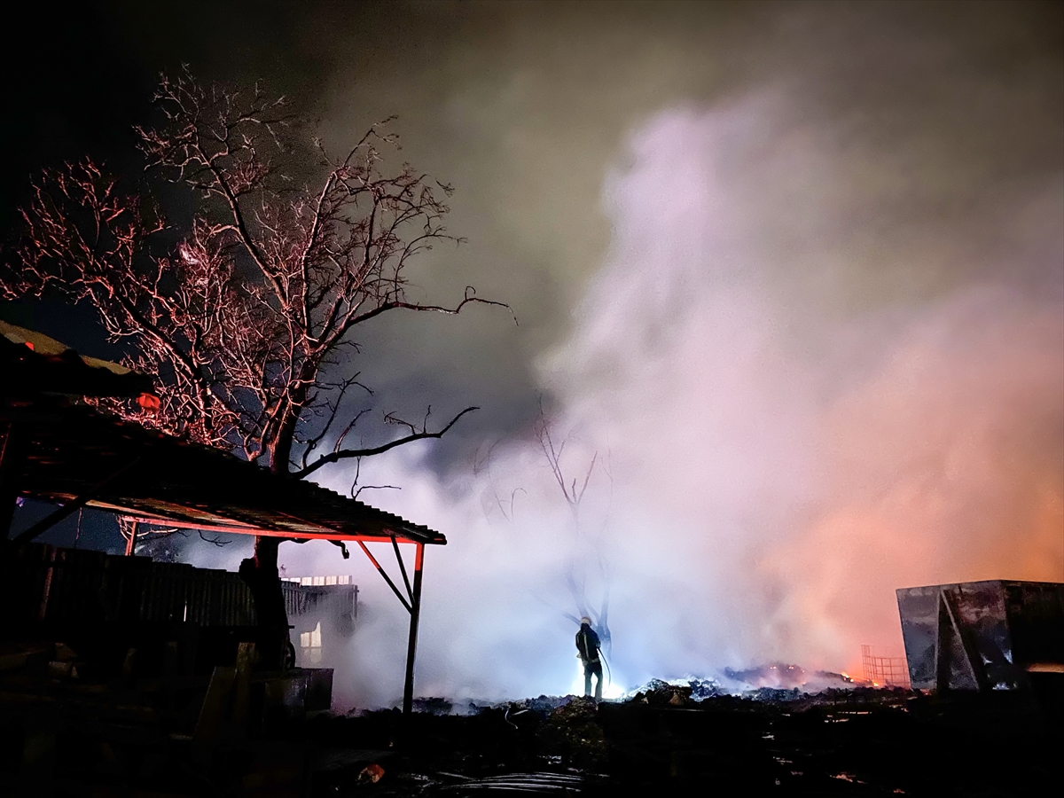 Yaralanan kimsenin bulunmadığı öğrenilen yangın sonrası ekiplerin soğutma çalışmaları sürüyor.