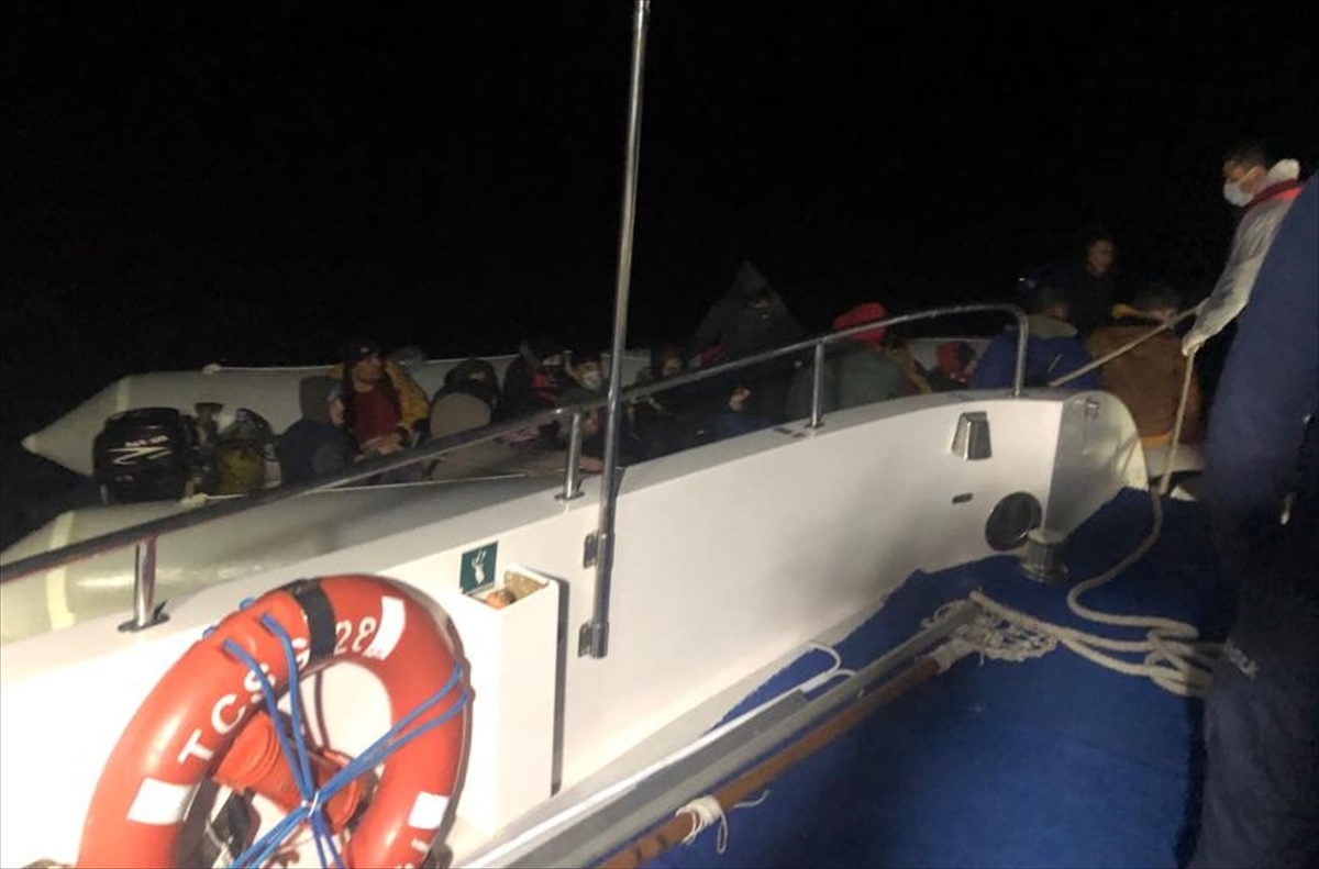 TCSG-28 komutanlığı ekipleri, botta farklı uyruklara mensup 35 düzensiz göçmen olduğunu belirledi.