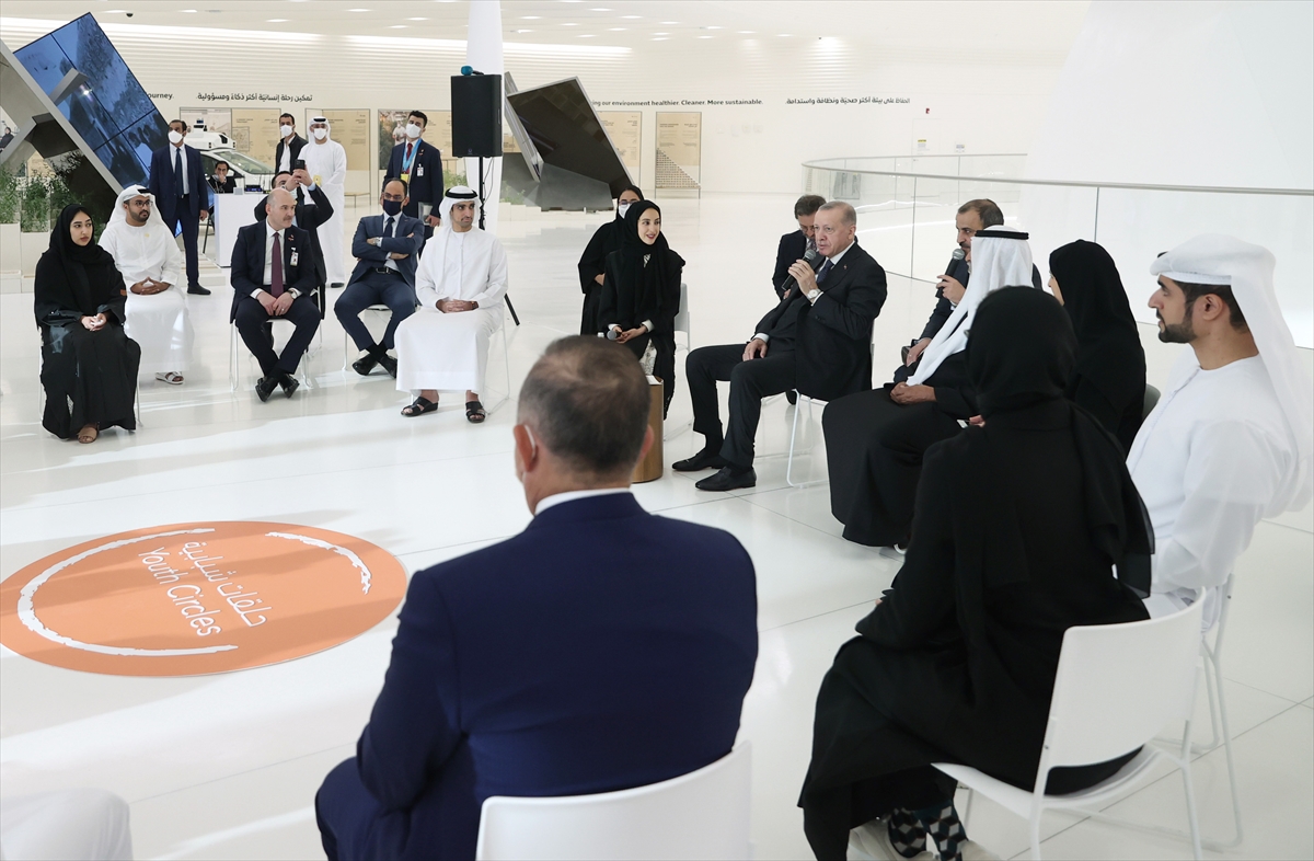 Erdoğan, Dubai Expo'da Birleşik Arap Emirlikleri (BAE) Pavilyonu'nda dün gençlerle bir araya geldi.