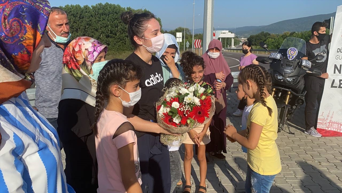 2020 Tokyo Olimpiyat Oyunları'na katılan halterci Nuray Levent, memleketi Düzce'de çiçeklerle karşılandı