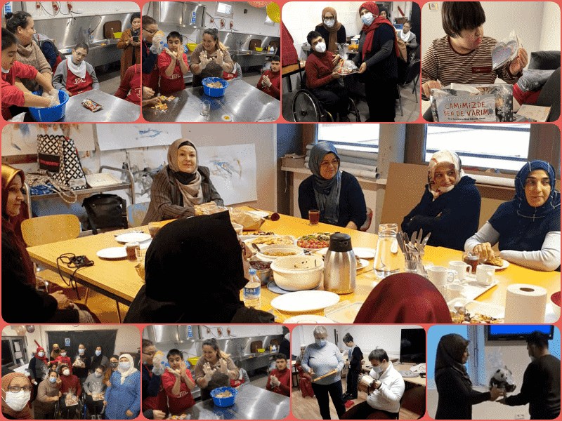 Köln DİTİB Bölge Kadın Birliği’nin desteği ile Siegburg DİTİB Camii kadınlar kolu düzenlediği etkinlik saatinde özel çocuklarla anneleri birlikte kurabiye yaptı ve yaptıkları kurabiyeleri paketledi. Özel çocukların anneleri ile birlikte katıldığı etkinlikte hem Siegburg Camii kadınlar kolu hem de katılımcılar mutluluk içerisinde neşeli saatler geçirdi.