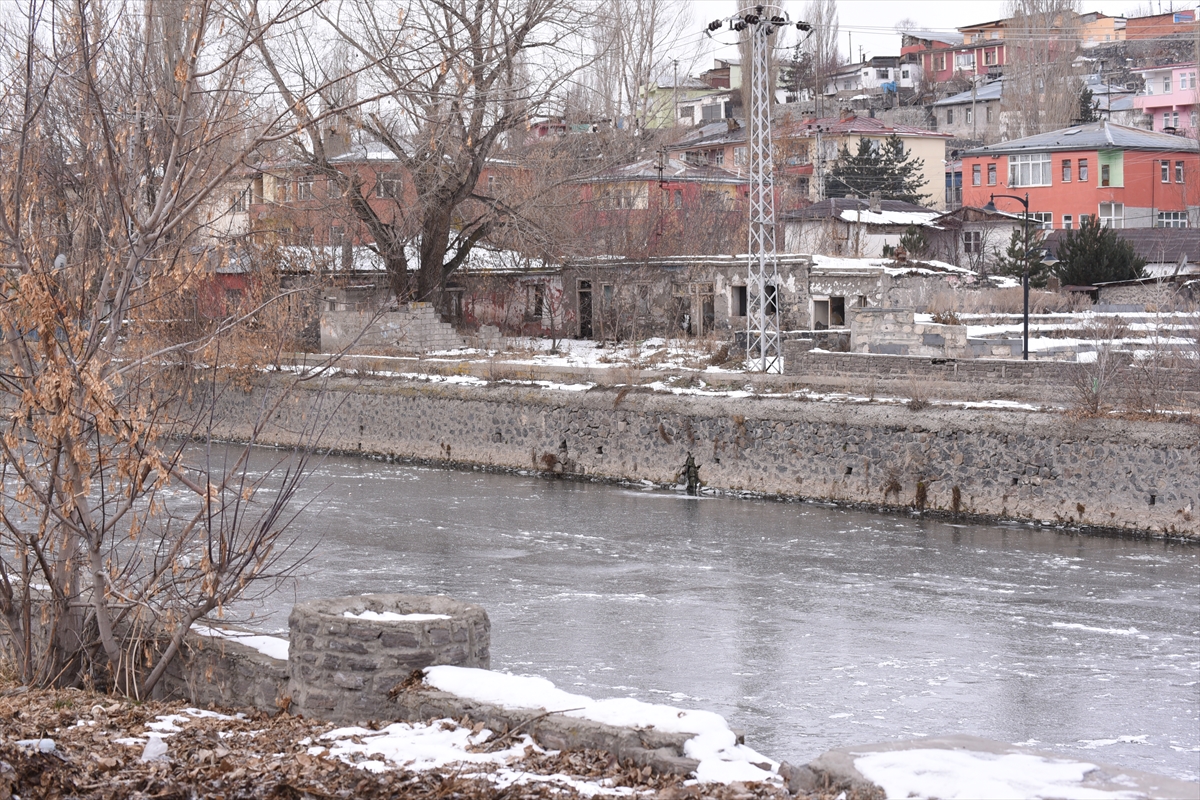 Soğuk hava nedeniyle Murat Nehri, dere ve çaylar kısmen dondu.