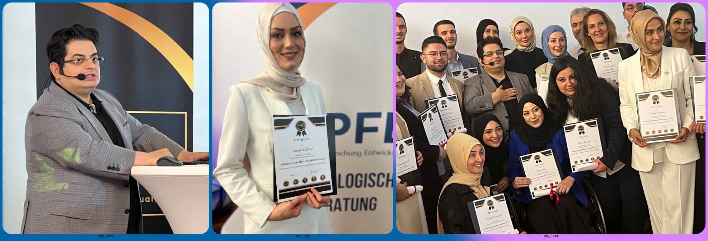 İSKENDER GÜNGÖR KÖLN – Almanya’nın Düsseldorf kentinde Psikoloji Araştırma Geliştirme (PFE) enstitüsü mezun olan 3. Dönem psikolojik danışmanlarına sertifikalarını Köln Germani Terasda (25.06.2023) verdi. Yirmisekizi bayan beşi erkek toplam otuzüç kursiyer sertifikalarını okulun müdürü Psikolog Dr. Zafer Akıncı’nın elinden aldılar. Sümeyra Birol isimli bayan kursiyer 100 tam puanla dönem birincisi oldu.