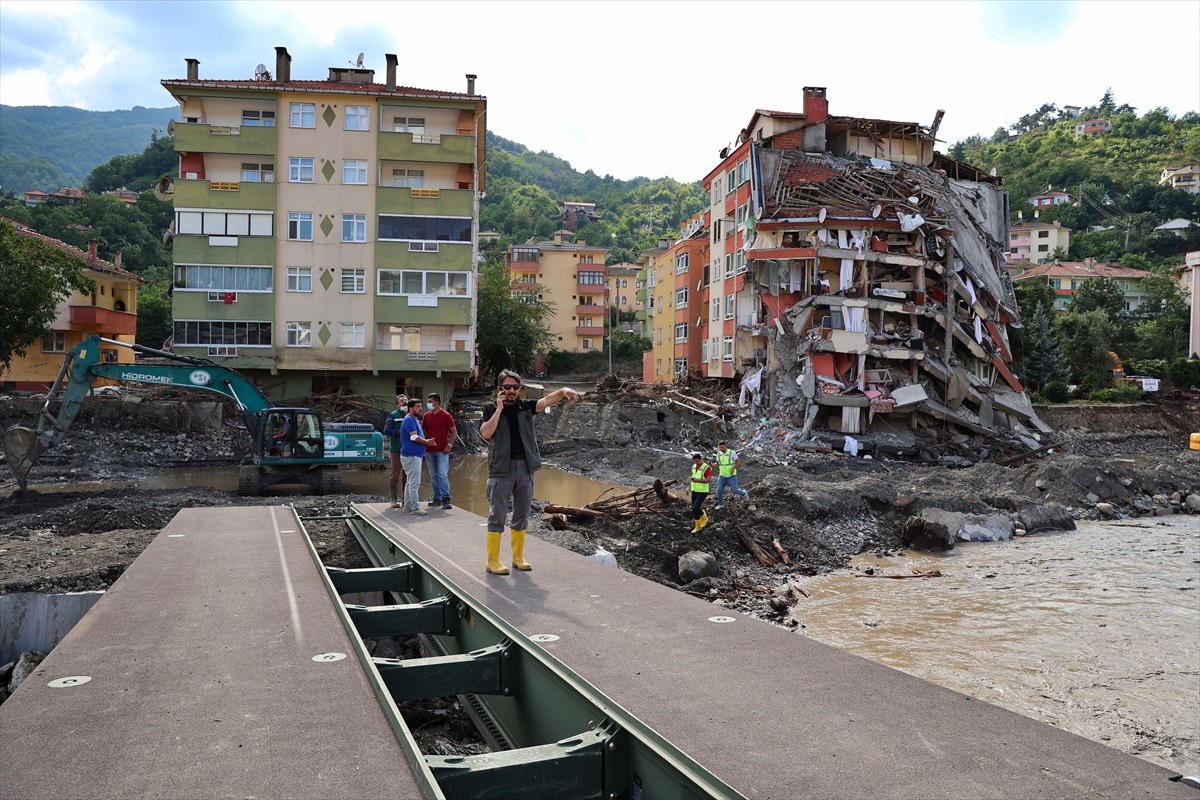 Bozkurt ilçesinde yıkılan köprünün yerine seyyar köprü kuruldu