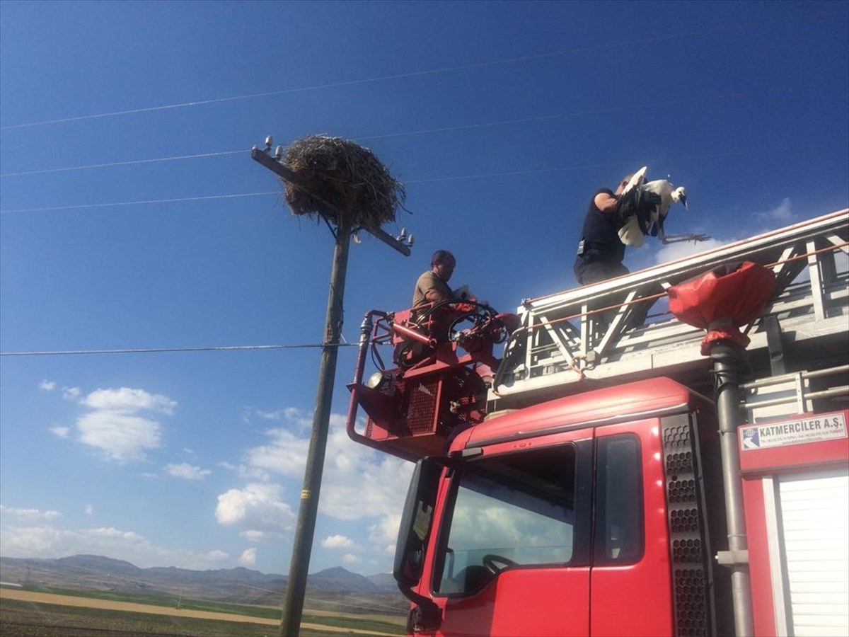 KAYSERİ (AA) – Kayseri'de anneleri öldüğü için elektrik direğinde mahsur kalan 2 leylek yavrusu koruma altına alındı.
