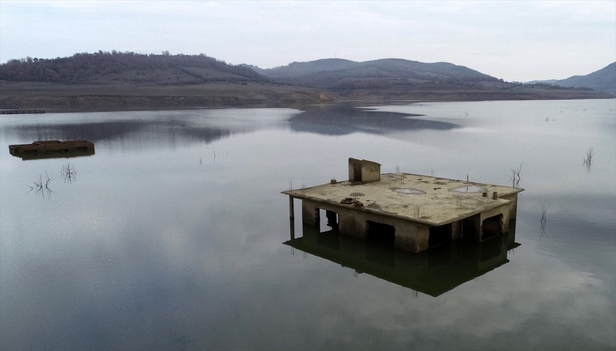Çanakkale'deki barajın seviyesi azalınca eski köy 6 yıl sonra yeniden göründü