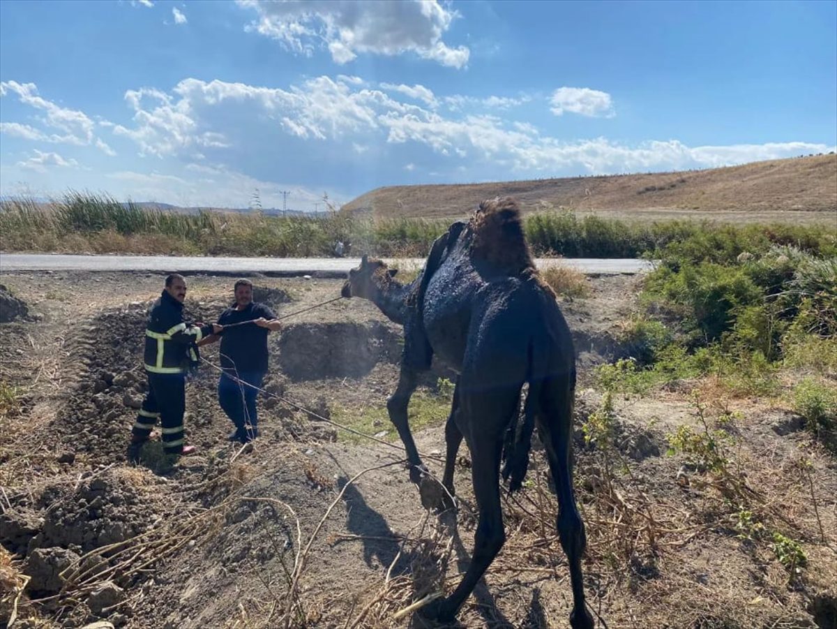 Hatay’da su kanalına düşen deveyi itfaiye kurtardı