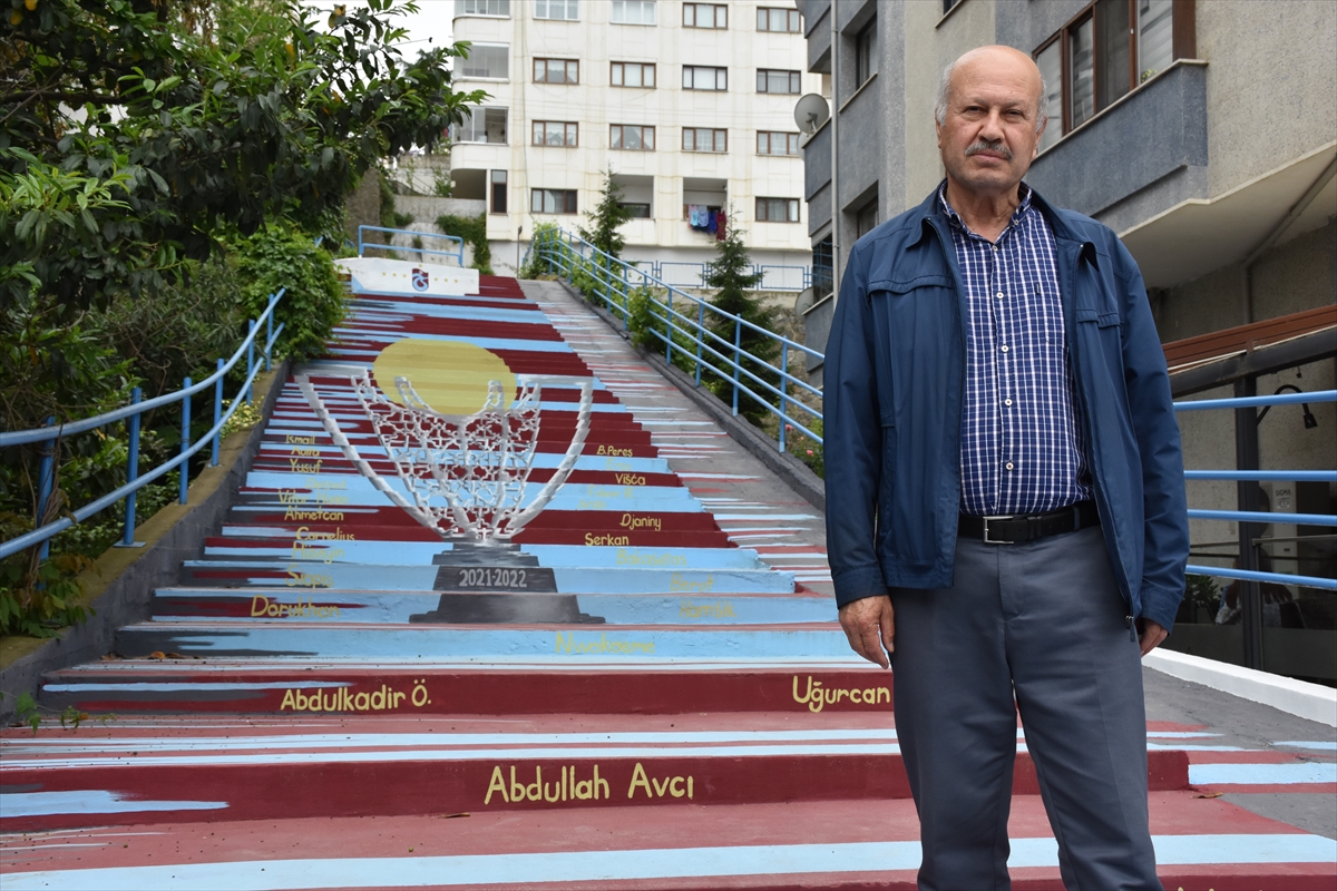 Trabzonspor'un şampiyonluk kupası merdivenlere resmedildi