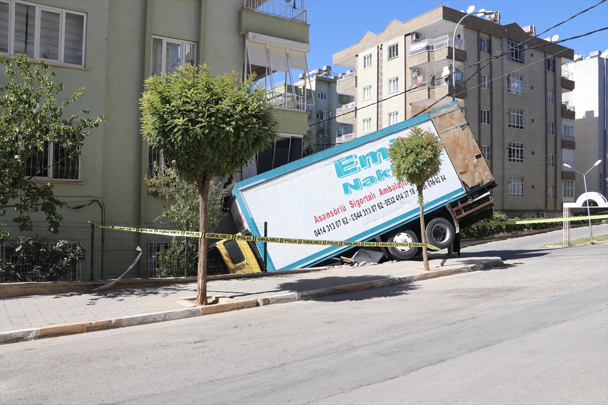 ŞANLIURFA (AA) – Şanlıurfa'da park halindeyken freni boşalan nakliye kamyonu, 6 katlı apartmanın duvarına çarptı.