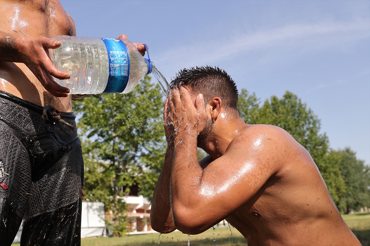 Edirneli pehlivanlar aşırı sıcaklara rağmen Kurtdereli ve Elmalı yağlı güreşlerine hazırlanıyor