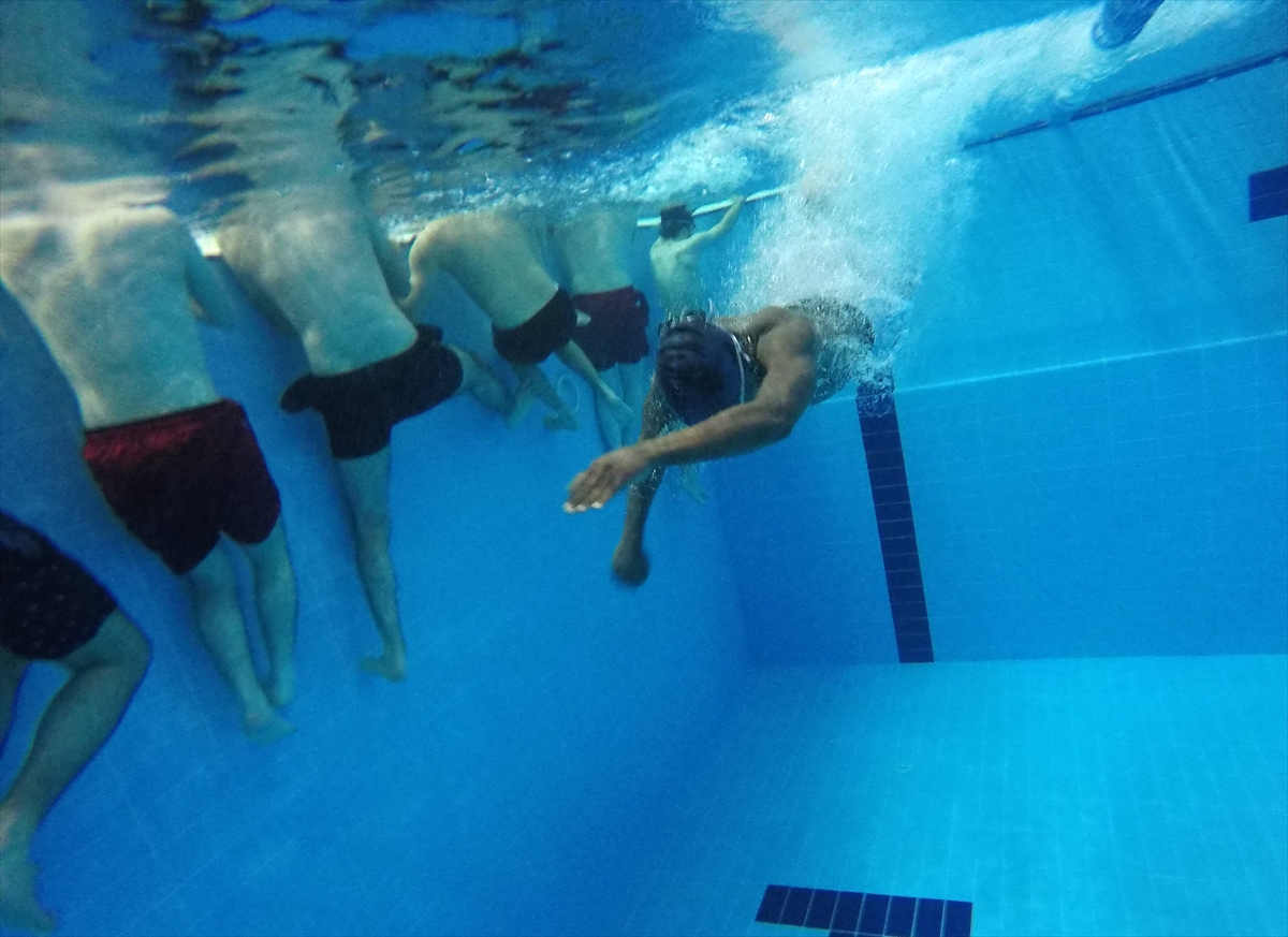 Bursa'da yurtta kalan üniversiteli gençlere yüzme eğitimi veriliyor