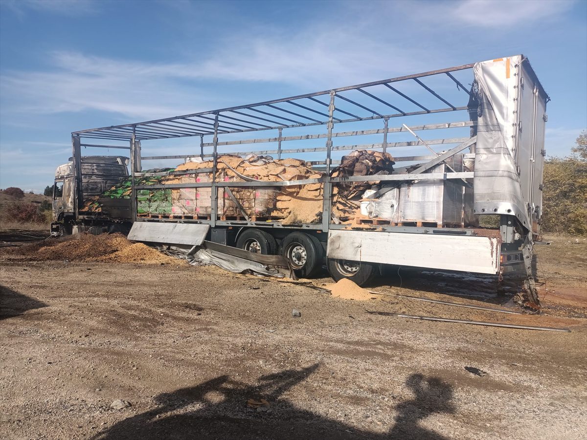 Karabük'te seyir halindeki fındık yüklü tır yandı