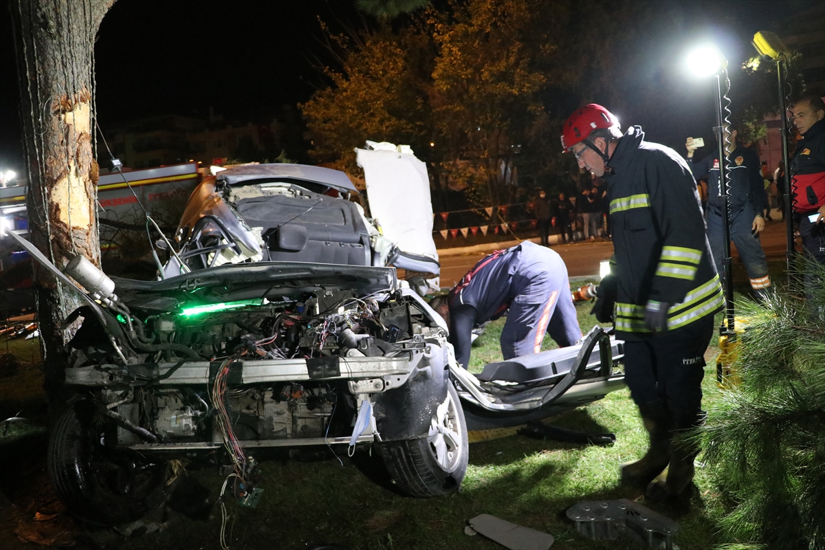 Manisa'da refüjdeki ağaca çarpan otomobilin sürücüsü ağır yaralandı