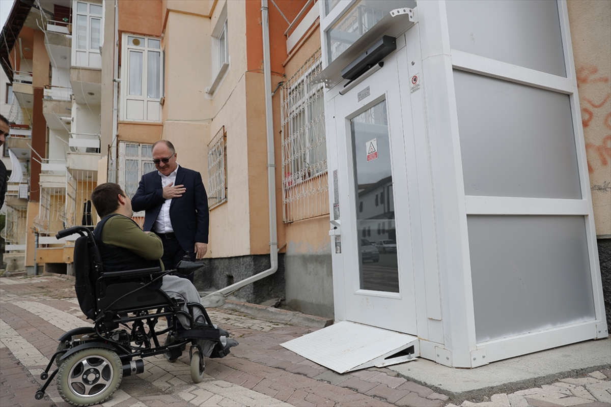 Sivas Belediyesi, engellinin yaşadığı binaya asansör yaptı