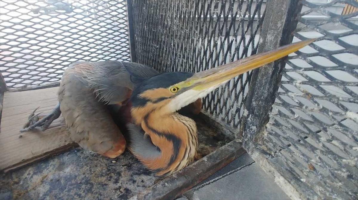 Kayseri'de yaralı halde bulunan erguvani balıkçıl kuşu tedavi altına alındı