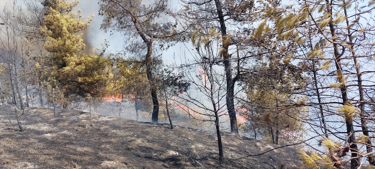 Büyükşehir Belediyesi İtfaiyesinin de destek verdiği yangını kontrol altına alma çalışmaları sürüyor.