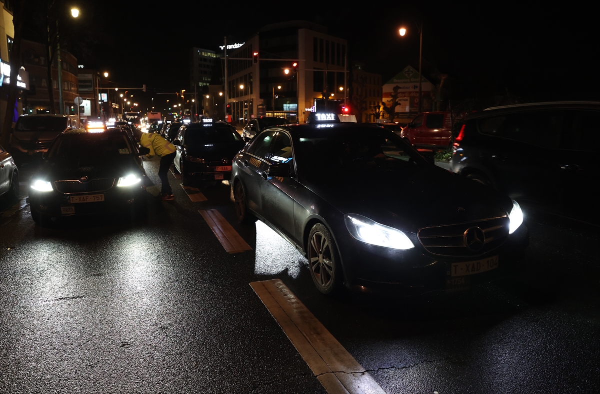 Brüksel'de taksicilerden Uber protestosu