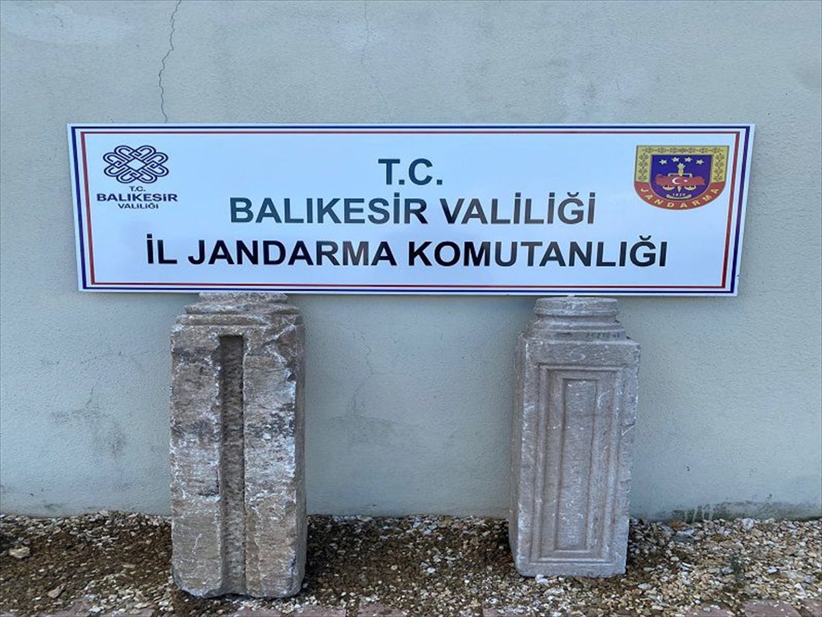 Balıkesir'de şüphe üzerine durdurulan araçta tarihi mermer sütunlar ele geçirildi