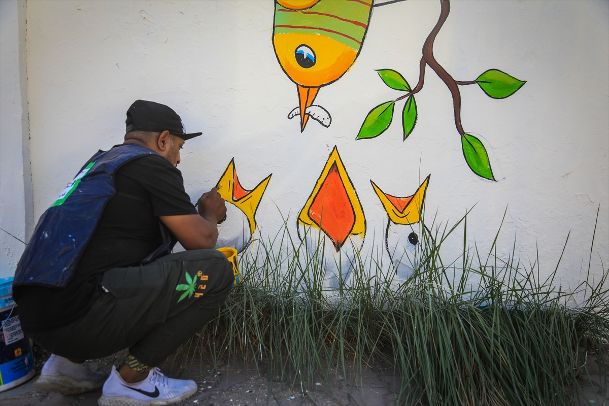 Bağdat'ın köhne sokakları gönüllü gençlerin renkli çizimleriyle canlanıyor
