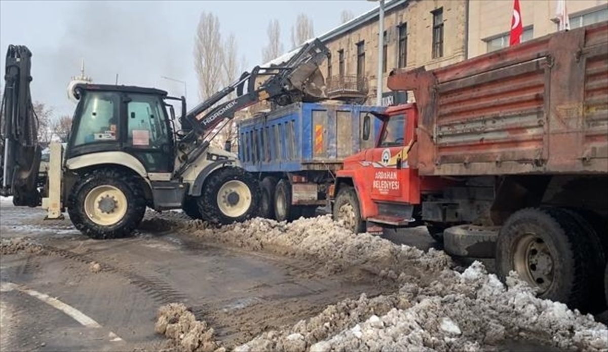 Ardahan'da cadde ve sokaklarda biriken kar kent dışına taşınıyor