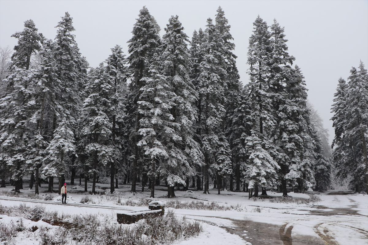 Karabük'te bulunan 2 bin rakımlı Keltepe Dağı'nda da gece başlayan kar, yüksek kesimleri beyaza bürüdü.