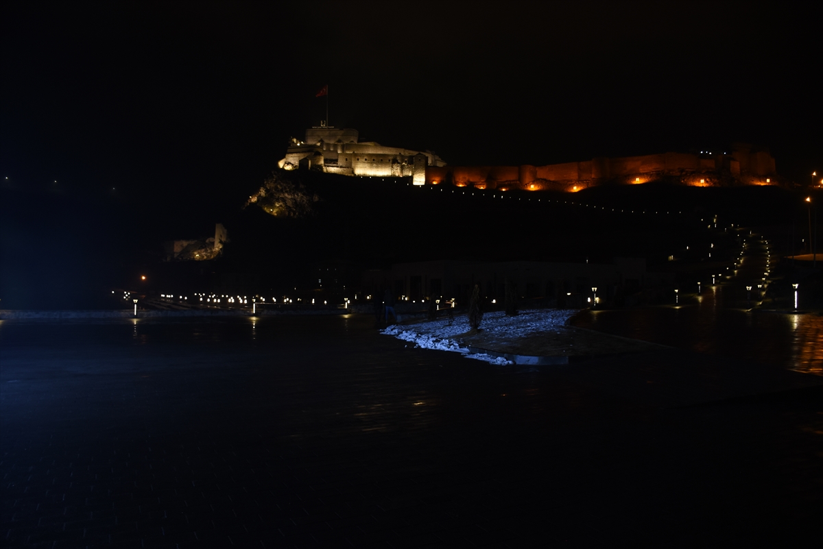 Kars Kalesi kadına yönelik şiddete dikkati çekmek için turuncu ışıklarla aydınlatıldı