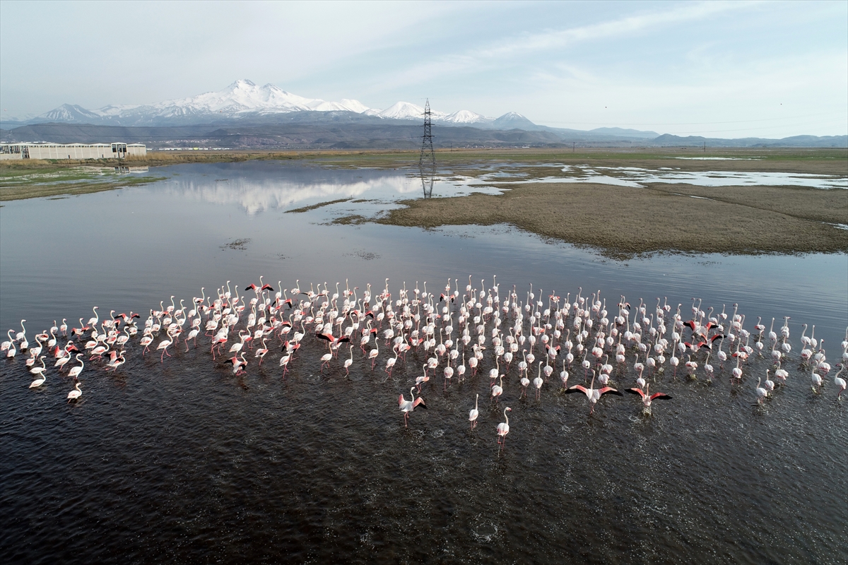 KAYSERİ (AA) – Kayseri'de flamingolar, uluslararası öneme sahip sulak alan Hürmetçi Sazlığı'nda güzel görüntüler oluşturdu.