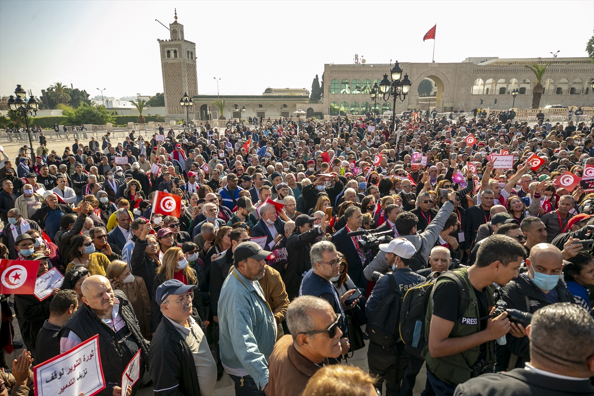 Tunus’ta parlamentonun açılması ve erken seçim talebiyle gösteri yapıldı
