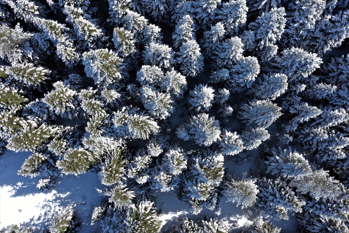 Kastamonu'nun karla kaplı ormanları havadan görüntülendi