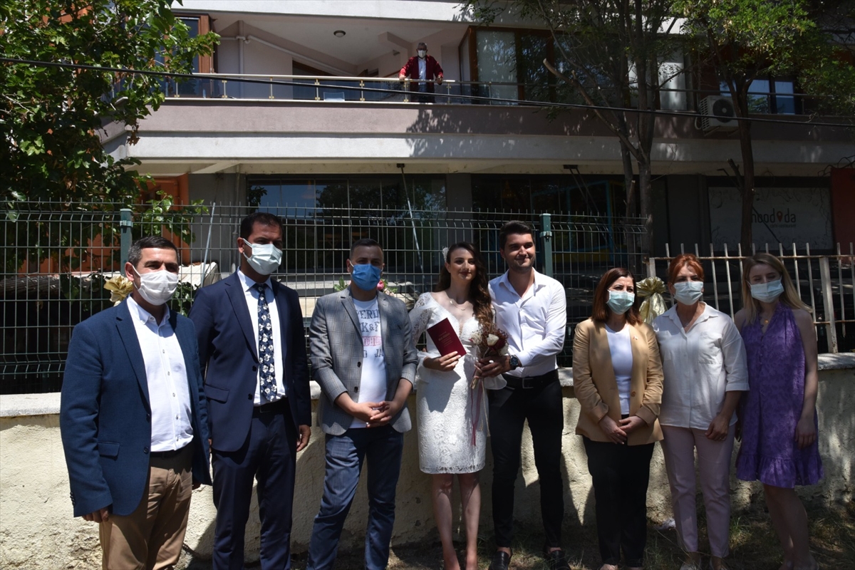 EDİRNE (AA) – Edirne'de yeni tip koronavirüs (Kovid-19) tedavisi evinde devam eden Keşan Belediye Başkanı Mustafa Helvacıoğlu, gelin ve damadın isteği üzerine balkondan nikah kıydı.