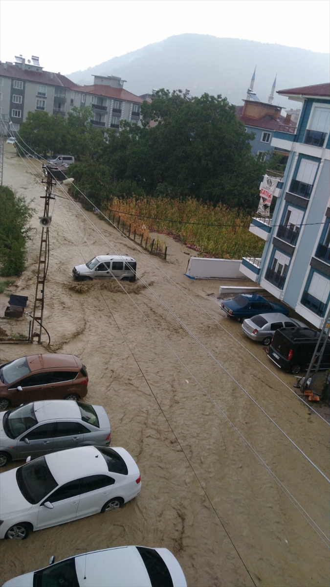 Ayancık'ta sağanağın ardından çay taştı, evleri ve iş yerlerini su bastı