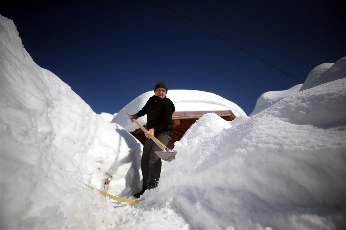 Vatandaşlar da iş yerleri ve evlerinin çatılarında biriken karları temizliyor.