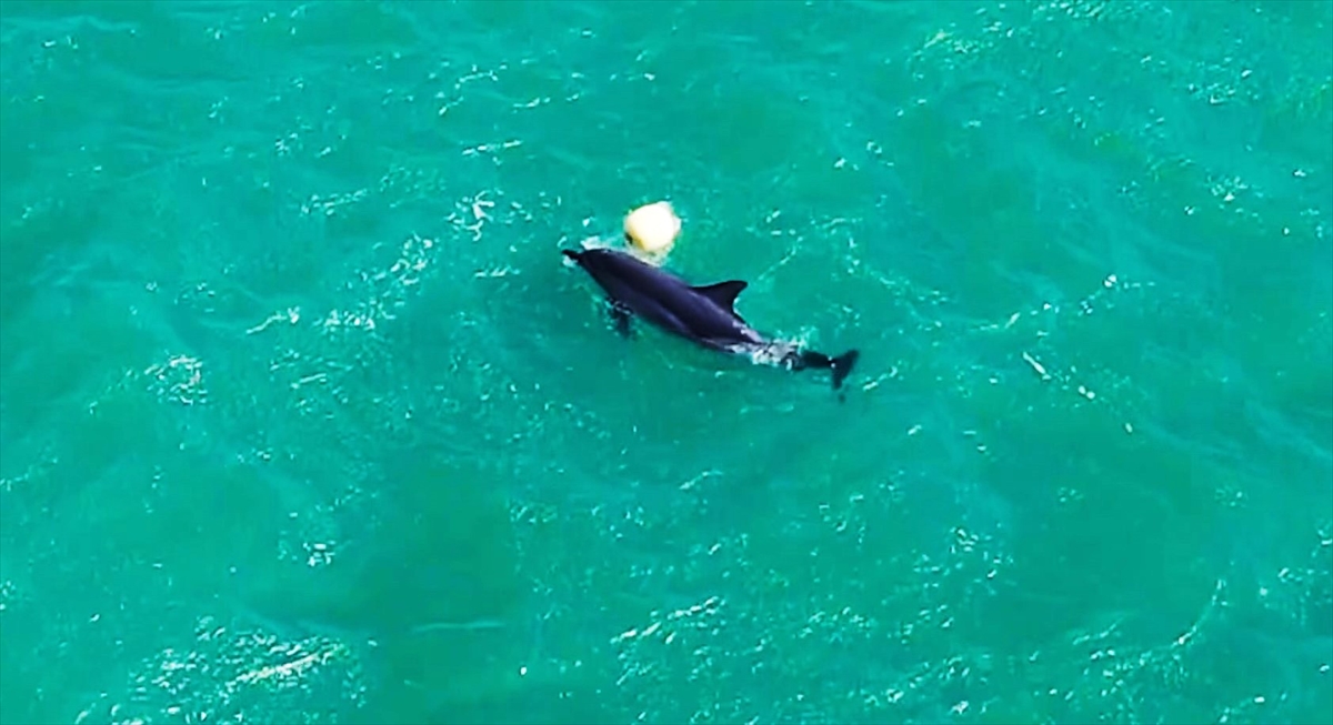Ayvalık'ta yunusun şamandırayla oyunu drone ile görüntülendi
