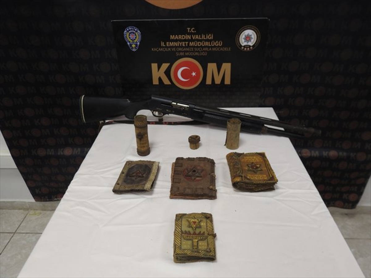 MARDİN (AA) – Mardin'in Kızıltepe ilçesinde bin yıllık olduğu değerlendirilen altın işlemeli el yazması 5 Tevrat ele geçirildi.