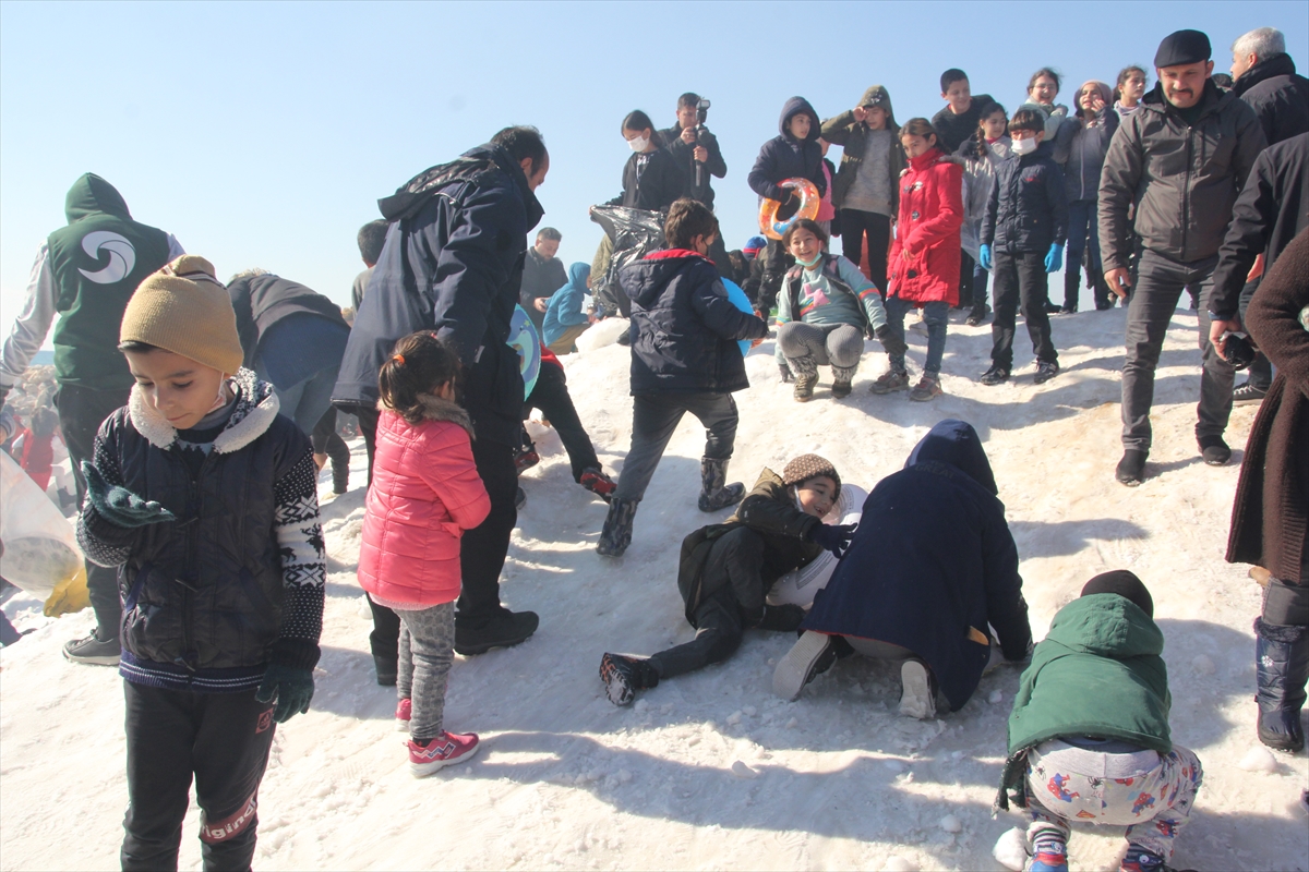 Mersin'de yarıyıl tatilindeki çocuklara kar şenliği