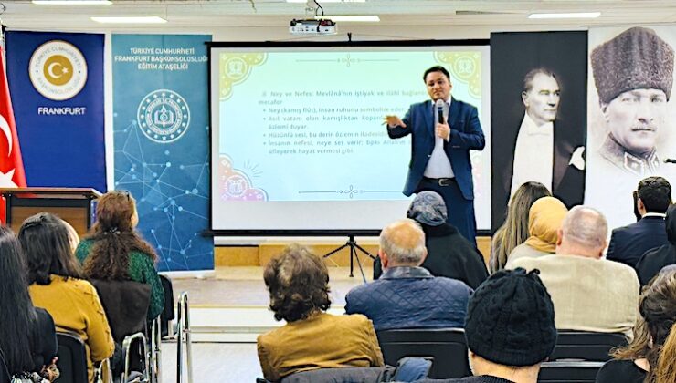 FRANKFURT/ EUTURKHABER-Mevlânâ Celâleddîn-i Rûmî’nin 752. vefat yıl dönümü ve Şeb-i Arûs münasebetiyle Frankfurt Türk Kültür Merkezi’nde düzenlenen anma programında, Mevlânâ’nın nefes, ney, musiki ve evrensel ahlak anlayışı ele alındı. Program, manevi derinliği ve akademik içeriğiyle dikkat çekti.