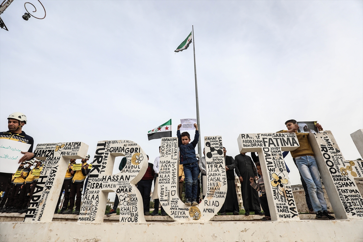 Han Şeyhun'daki kimyasal silah katliamı İdlib'de protesto edildi