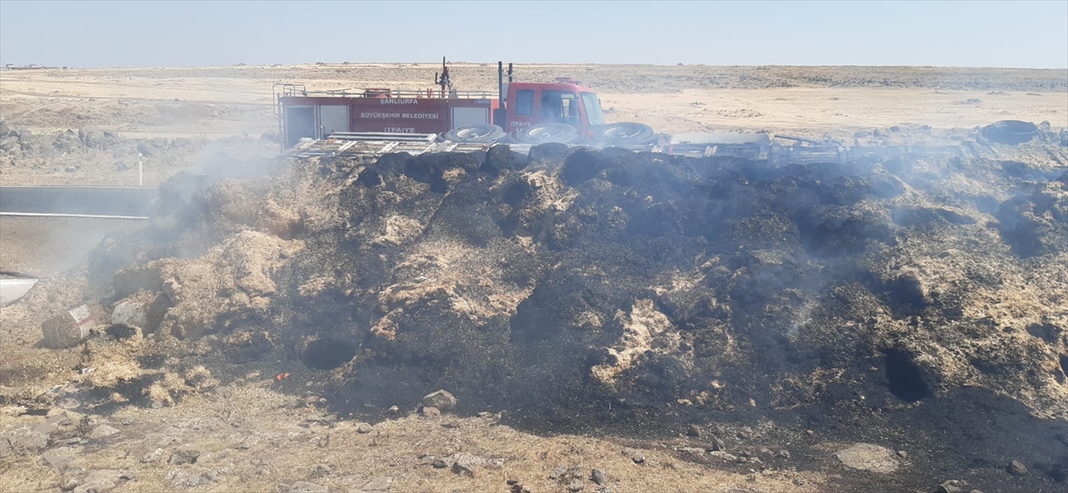 Şanlıurfa'da devrilen saman yüklü tır, alev aldı