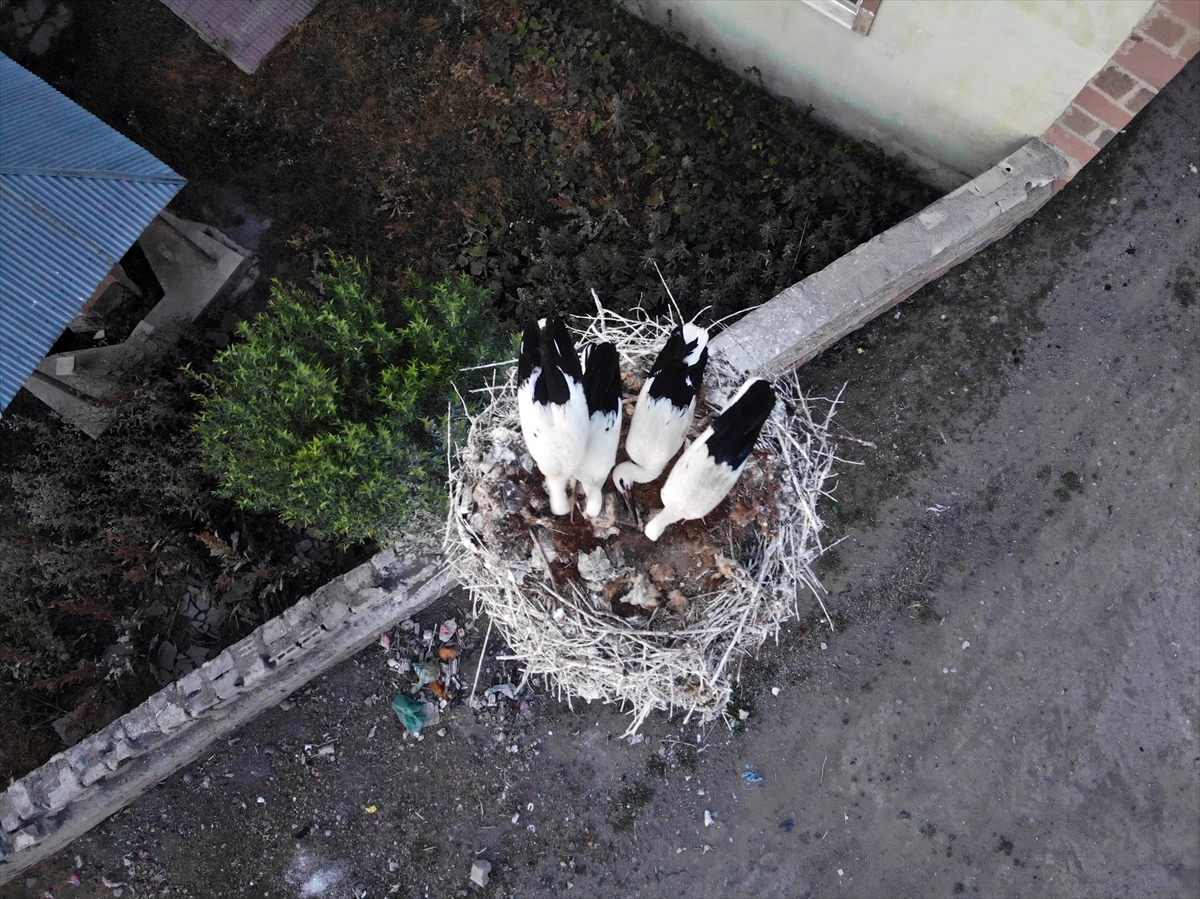 Ağrı'da kanat çırparak uçma denemeleri yapan yavru leylekler, göç yolculuğuna hazırlanıyor